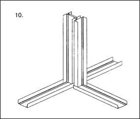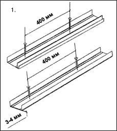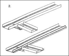 Потолочный пристенный кант крепится непосредственно к стойкам через 0,6 или 1,2 м. При монтаже подвесного потолка необходимо следить, чтобы потолочные направляющие там, где возможно совпадали с вертикальным W или H - профилем.