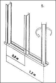 При монтаже каркаса с высотой большей, чем высота панели между стойками устанавливаются дополнительные перекладины из того же металлопрофиля.