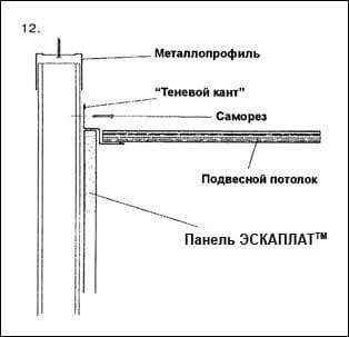 При заранее определенной высоте потолков целесообразно использовать пристенный «теневой» кант, который устанавливается до монтажа панелей. В этом случае верх панели вставляется в образовавшийся технологический паз и прижимается в дальнейшем W - профилем.